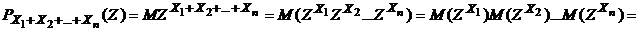 Следовательно, Свойство 6. Если Х1,Х2,…,Хn—независимые целочисленные случайные величины, то производящая функция