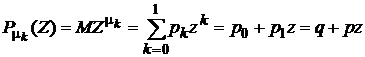 Пример 1. Пусть μ—число успехов в n независимых испытаниях Бернулли, т.е. μ~B(n,p)—биномиальное распределение с параметрами (n,p). Найти производящую функцию случайной величины μ.