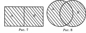 1. Гетманова А.Д. Логика. - М.: Новая школа, 1995. - С. 27-44. 2. Жеребкін В.Є. Логіка. - X.: Основа; К.: Знання, 1999. - С. 24-41. 3. Кириллов В.И., Старченко А. А. Логика. - М.: Высшая школа, 1998. - С. 35-62. 4. Конверський А.Є. Логіка. - К.: Четверта хвиля, 1998. - С. 123-145. 5. Мельников В.Н. Логические задачи. - К.; Одесса: Вища школа, 1989. - С. 16-28. 6. Руденко К.П. Логіка. - К.: Вища школа, 1976. - С. 27-64. 7. Свинцов В.И. Логика. - М.: Скорина; Весь мир, 1998. - С. 36-44. 8. Тофтул М.Г. Логіка. К.: Академія, 2003. - С. 2Ф-34. 9. Хоменко І.В. Логіка: Підручник для вищих навчальних закладів. — К.: Абрис, 2004.-С. 39-63. Навчальний посібник «Логіка» - Жеребкін В.Є. 2.8. Операції над поняттями Операції над поняттями — це такі логічні дії, унаслідок яких утворюються нові поняття. Оскільки обсяг понять розглядається як клас, із яким проводяться ці операції, то останні й називаються операціями з класами. Унаслідок цих операцій (операцій над поняттями) здобувають нові класи. Розгляньмо такі операції над поняттями: а) складання, б) множення, в) заперечення, г) узагальнення і обмеження понять. А. Операція складання понять полягає в об'єднанні двох чи кількох класів у один клас. Так, операція складання понять "обвинувальний присуд" і "виправдувальний присуд" полягає в об'єднанні класу обвинувальних присудів з класом виправдувальних присудів у один клас, або в одне поняття "обвинувальний присуд" літерою А, а поняття "виправдувальний присуд" — літерою В, то результат цієї операції можна відобразити графічно так (див. рис. 7). Заштрихована поверхня е клас присудів. За допомогою операції складання можна об'єднати класи (поняття), що перебувають між собою у найрізноманітніших відношеннях: тотожності, підпорядкування, перехрещення, супідрядності, суперечності, протилежності. Наприклад, при об'єднанні понять "свідки" (А) і "родичі" (В), які перебувають у відношенні перехрещення, ми здобудемо новий клас (рис. 8), до якого увійдуть не тільки свідки, що не е родичами, і родичі, котрі не є свідками, а й родичі-свідки. При складанні понять "договір" (А) та "угода" (В), між котрими існують відношення підпорядкування, здобудуть новий клас (заштрихована поверхня рис. 9), до якого увійдуть не тільки угоди, що не є договорами, а й угоди, які є договорами.