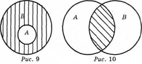 Графічно результат цієї операції можна відобразити так (див. рис. 10). Заштрихована частина поверхні і означає шукане класу предметів, тобто тих людей, котрі є одночасно і свідками, і родичами Операцію множення можна проводити з поняттями, що перебувають між собою у різних відношеннях. Наприклад, якщо нам треба провести операцію множення понять "злочин" (А) і "посадовий злочин" (В), що перебувають у відношенні підпорядкування, то ми виділяємо такі елементи підпорядкування, котрі одночасно входять до обох цих класів, тобто відшукуємо такі злочини взагалі, які одночасно є і посадовими. Графічно результат операції множення цих понять матиме таке відображення (див. рис. 11). Заштрихована поверхня позначає клас тих елементів (злочинів), котрі одночасно входять до поняття А ("злочин") і до поняття В ("посадовий злочин"). Під час множення понять, обсяг яких не збігається, ми здобуваємо нульове поняття. Наприклад, нам необхідно провести операцію множення над поняттями "навмисно" і "необережно". Оскільки обсяг цих понять не має загальних елементів, то здобута внаслідок операції множення множинність дій є одночасно навмисною і необережною і буде нульовим класом. Операція множення позначається здебільшого за допомогою сполучника "і" ("студент і спортсмен", "право і державне право", "хабар і халатність"), котрий вживається у поєднувальному значенні. В. Операція заперечення поняття А полягає в утворенні нового поняття — не-А, обсяг якого, складений з обсягом поняття А, становить логічний клас сфери предметів, про яку ми розмірковуємо. Наприклад, сферою нашого міркування є юридичні угоди. Заперечуючи поняття "купівля-продаж" (А), ми здобудемо поняття "не купівля-продаж" (не-А). Склавши поняття "купівля-продаж" і "не купівля-продаж", ми здобудемо клас юридичних угод.