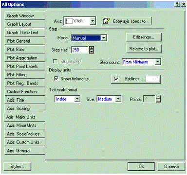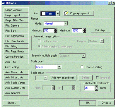 2.3.5. На вкладке «Axis Scaling» изменить диапазон левой оси Y,