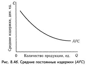 При изменении объема производства средние постоянные издержки снижаются (рис. 8.4б).