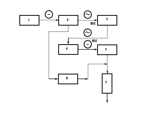 Основным элементом схемы высоковольтного блока является преобразователь тока. По принципу действия высоковольтный блок является усилителем напряжения. Скелетная схема блока показана на рис.1