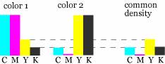 Подсуммируем оба правила: будем считать две компоненты равными друг другу, если значение одной превосходит значения другой на величину relative step limit. Тогда: 3. Парой достигнут common density limit При анализе компонент в паре объектов необходимо также учитывать их общую (common) составляющую. Она определяет цвет вырубки, возникающей при наложении объектов. На рис 13 показан пример – пара цветов C100M100Y40K20 и C20M0Y100K100. У них есть общая составляющая – C20M0Y40K20. Эта составляющая и есть самый светлый цвет, который может возникнуть при несовмещении в такой паре. Если общая составляющая достаточно темная, то trapping в такой паре не нужен. Типичный порог (common density limit) для высококачественных работ рекомендуется на уровне 0.5D, для простых работ (офсетки-газетки) его можно понизить до 0.35-0.4D.
