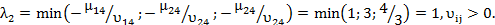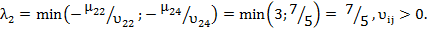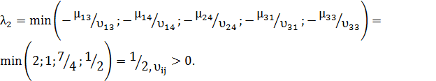 Находим оценки свободных клеток: D11=1-3l, D13= -2+l, D14= -1+l, D22= -5, D24= -7+4l, D33= -1+2l. Определим пределы изменения l: