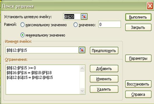 В результате получится оптимальный набор переменных при данных ограничениях: