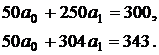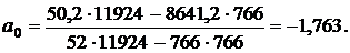 Расчетные данные из табл.2 подставим в формулы и определим параметры а 0, а 1:
