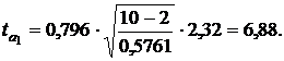 Табличное значение t -критерия с уровнем значимости 0,05 и числом степеней свободы (n - 2) равно 2,307. Так как t эмп > t табл,параметры уравнения регрессии можно признать значимыми. Значимость коэффициента корреляции оценим с помощью t- критерия