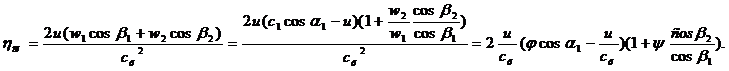 Поскольку окружное усилие совпадает с направлением окружной скорости вращения u, то оно определяет работу, производимую на роторе в пределах рассматриваемой турбинной ступени. Тогда мощность на рабочих лопатках Nu, которая называется лопаточной и иногда обозначается Nол, равна Nu=uRu. В свою очередь удельная работа 8.1 Относительный лопаточный КПД ступени.