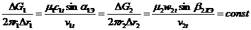 Поскольку давление р1 вдоль оси а постоянно, то уравнение равновесия всех сил в проекциях на направление радиуса r имеет вид: р1×r×dj×da–(р1+dр1)(r+dr)×dj×da+2 (р1+0,5dp1)×dr×da×sin Заменив sin(dj/2)»dj/2, после преобразований (членами третьего порядка малости пренебрегаем) получим для сечения «1-1» ступени упрощенный вид уравнения радиального равновесия Аналогично получают уравнения и для других сечений