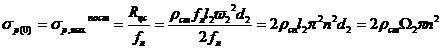где W2 =pd2l2 – аксиальная (осевая) площадь выхода из рабочих лопаток последней ступени; с2, v2 – осредненные по высоте выходного сечения рабочей решетки значения абсолютной скорости и удельного объема. Максимальные значения напряжения растяжения s р, мах от действия центробежных сил Rцс при вращении ротора с угловой частотой w=2pn имеют место в корневом сечении рабочей лопатки. При постоянном значении площади f л сечений профиля по высоте лопатки