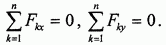 называемым векторным условием равновесия сходящихся сил. Это условие можно выразить в геометрической форме (в терминах силового многоугольника) и в аналитической форме (через проекции сил на координатные оси). Применительно к силовому многоугольнику равенство (1) означает, что длина замыкающей стороны силового многоугольника равна нулю. Следовательно, в силовом многоугольнике конец вектора последней силы Аналитические условия равновесия представляют собой покоординатную запись векторного равенства (1):