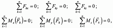 Условия (уравнения) равновесия пространственной произвольной системы сил