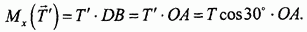 Моменты сил Вычисление момента силы часто облегчается, если силу разложить подходящим образом на составляющие и воспользоваться теоремой Вариньона. В данном случае это удобно сделать для силы