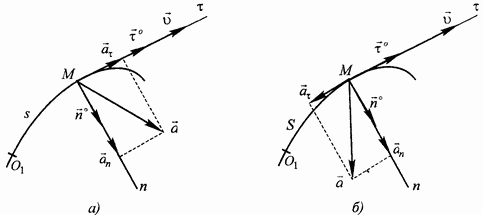 Пусть, для определенности, точка движется в положительную сторону отсчета дуг, тогда вектор скорости выражается формулой