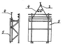 Pиc. 4. Схема строповки торцевой опалубки: 4 - двухветвевой строп 2СК ( L = 5 м, Q = 5 м); 5 - торцевая опалубка