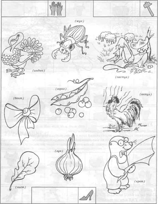 .Содержание: определить последний звук в названии каждой картинки и соединить