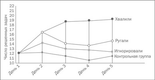 Общий процент улучшения по группам выглядел так: похвала – 71 %; критика – 19 %; игнорирование – 5 %.