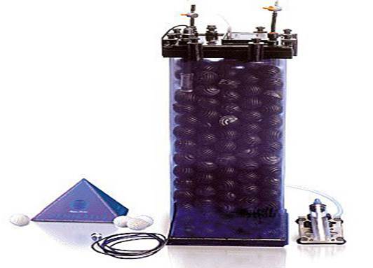 Эту реакцию могут проводить аэробные гетеротрофные бактерии, среди них Pseudomonas denitrificans, Pseudomonas aeruginosa, Paracoccus denitrificans или Bacillus licheniformis. Главное условие для работы такого фильтра слабый проток воды. В зависимости от величины, объема и типа фильтра он может составлять от нескольких литров до 30 литров в час. Такая скорость необходима, чтобы гарантировать установление анаэробной среды, поскольку при сильном течении в него будет попадать много кислорода. В фильтре существует внутренняя циркуляция, способствующая равномерному распространению анаэробной среды. Раньше в денитрифицирующие фильтры углероды регулярно добавляли в форме лактозы (молочный сахар). Сегодня в качестве корма все чаще используются так называемые "Deniballs", шарики-наполнители для фильтра, состоящие из производного масляной кислоты. Очень важно поддерживать нужный редокс-потенциал в нитратредукторе. Для нормального течения денитрификации этот показатель должен удерживаться в пределах от -50 до -250 mV. Редокс-потенциал можно замерять электронно с помощью специальных устройств. Наиболее практично и безопасно — использовать автоматику, которая исходя из этого показателя, будет включать или выключать дозирующую помпу, подающую воду в фильтр-денитратор. Управлять работой нитратредуктора можно, варьируя количество подкормки или поток воды. Основные принципы: добавление питания в денитратор и уменьшение протоки – понижает окислительно-восстановительный потенциал, уменьшение питание и увеличение проточности – сдвигает вверх. К этому типу денитрификационных фильтров относится нитратный редуктор производства фирмы Aqua Medic, предназначенный для аквариумов объемом до 1000 литров (на фото). Расходными материалами для этого фильтра являются Deniballs и порошок Denimar. Контролировать процесс можно используя редокс-электрод (не включен в комплект поставки), который вкручивается в предусмотренное в крышке отверстие с резьбой PG 13,5. Nitratreductor 1000 герметичен и может использоваться как часть общей фильтрующей системы или отдельно — в этом случае он устанавливается в тумбу под аквариум. А вообще выбор и ценовой диапазон денитрификационных фильтров для морских аквариумов сейчас довольно велик. От высокотехнологичных систем с автоматической регулировкой тока воды, автоматической подкормкой бактерий и возможностью непрерывного измерения редокс-потенциала, а также подключаемым компьютером, обрабатывающим данные от редокс-контроллера и управляющим всеми этим процессами. Этот вариант может быть реализован, например, на оборудовании фирмы AquaMedic. До совсем незамысловатых, как Sera Bio-Denitrator — устройство производительностью 36 литров в сутки, лишенное возможности всего того, о чем было сказано выше. Бактерий в нем нужно кормить вручную, скорость потока воды должна контролироваться постоянно. Запускается сложно, может внезапно перестать работать. Но использовать можно, и есть данные, что в 200–300 литровом аквариуме при средней загрузке и практически не подменяемой воде такой фильтр уверенно способен обеспечить содержание нитратов в пределах 50 мг/л. Кроме того, по традиции нашей страны, богатой различными "самоделками", существует множество кустарных конструкций, смастеренных самими аквариумистами. До недавнего времени нитратные фильтры считались атрибутом морской аквариумистики, но в 