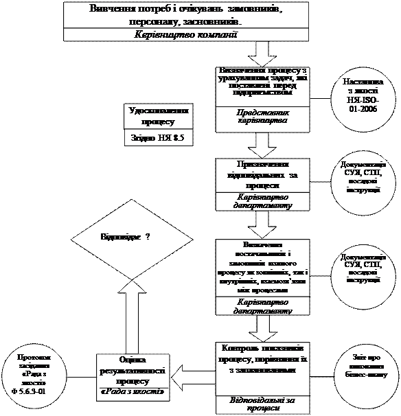 В даний час на підприємстві впроваджена і діє система управління всіма процесами, що гарантує їх відповідність існуючим спеціально розробленим вимогам і стандартам, сукупність яких визначає загальний процес.