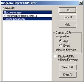 5. После внесения UDP типа Command или Command List щелчок по кнопке 6. В диалоге Activity Properties щелкните по кнопке Filter. В появившемся диалоге Diagram object UDP filter (рис. 10.4)
