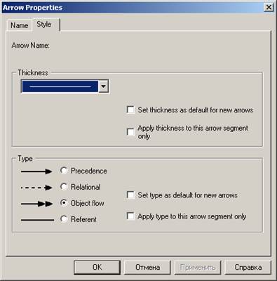 3. Внесите в диаграмму еще три работы (кнопка Внесите имена следующих работ: · Установка материнской платы и винчестера. · Установка модема. · Установка дисковода CD-ROM. · Установка флоппи- дисковода. · Инсталляция операционной системы. · Инсталляция дополнительного программного обеспечения. 4. С помощью кнопки Свяжите стрелкой объект ссылки и работу "Подготовка компонентов ". 5. Свяжите стрелкой работы "Подготовка компонентов" (выход) "Установка материнской платы и винчестера". Выделите стрелку, нажмите правую кнопку мышки и в меню выберите Style. Появится окно