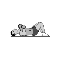 Мышцы груди Жим гантелей от груди лёжа Лягте на пол или на горизонтальную скамейку. Возьмите в руки гантели. Внутренние стороны предплечий должны быть направлены перпендикулярно телу. Локти согните вдоль тела. Напрягите грудь и, делая вдох, выжмите гантели вверх над грудью. Медленно опускайте гантели к груди на выдохе, сгибая руки в локтях. Повторите упражнение несколько раз.