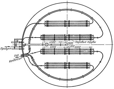 Подогреватели (рис. 2.8.) служат для подогрева темных нефтепродуктов и масел некоторых сортов, вязкость которых при хранении в резервуарах по разным причинам увеличивается настолько, что перекачка их по трубопроводам без подогрева не представляется возможным. Для обогрева применяют теплообменные элементы (змеевики, полутрубы, уголки), приваренные к корпусу, или внутренние подогреватели. Внутренние подогреватели изготовляют в виде U- образных теплообменников, которые вставляются в боковые люки, или в виде секционных труб (трубчатых секционных подогревателей), укладываемых на дно резервуара. Конструкции подогревателей различают следующих типов: стационарные и переносные, общие и местные, трубчатые, циркуляционного подогрева, паровые, электрические и др. С помощью подогревателей продукты перед выводом подогреваются для уменьшения вязкости до заданного значения.