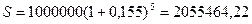 Задача 8. Какой величины достигнет долг, равный 1 млн.руб., через 5 лет при росте по сложной ставке 15,5% годовых?
