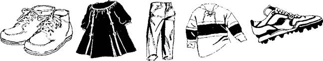 □ Антиципація змісту заримівки Перед прослуховуванням тексту доцільно запропонувати учням пригадати назви одягу, показавши їм малюнки: