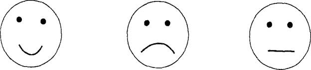Технологія 4: Listen and match Інструкція учням: Match the picture of the girl with the right article of clothes. Одним із варіантів перевірки сприйняття змісту заримівки може бути такс завдання: вчитель показує малюнки із зображенням трьох облич дітей з різною мімікою і пропонує учням вибрати малюнок, який відповідає змісту римівки, та учням пояснити, чому дівчинка невесела та яку річ їй необхідно знайти, щоб вона усміхнулася (технологія5). Технологія 5: Listen and point to the picture Інструкція учням: Look at the children's faces and point:o the face which reminds you of the little girl (which suits the rhyme).