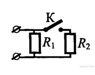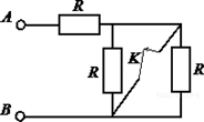 12. A 12 № 1421. На участке цепи, изображенном на рисунке, сопротивление каждого из резисторов равно R. Полное сопротивление участка при замкнутом ключе К равно 1) 0