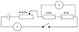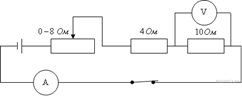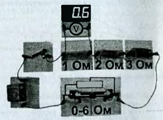 Показания вольтметра даны в вольтах.Чему будут равны показания вольтметра, если его подключить параллельно резистору 2 Ом? Вольтметр считать идеальным. 1) 0,3 В