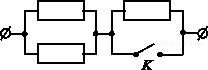 1) 15. A 12 № 1424. На участке цепи, изображенном на рисунке, сопротивление каждого из резисторов равно R. Полное сопротивление участка при замкнутом ключе К равно
