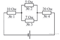 38. A 12 № 3603. На рисунке показана схема электрической цепи. Через какой резистор течет наименьший ток? 1) 1