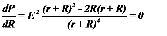 В элементах электрических цепей, обладающих активным сопротивлением R, электрическая энергия необратимо преобразуется в тепловую и может быть выражена через напряжение и электрический ток: Р=UI=I2R=U2/R. Активная мощность измеряется в Ваттах (Вт). Электрическая энергия (работа постоянного электрического тока) W выражается как произведение электрической мощности Р на время t: W=Рt=UIt. При подключении к источнику напряжения, который обладает внутренним сопротивлением r, активной нагрузки R через нее потечет ток I=E/(r+R), и будет выделяться мощность Р=UI=I2R=E2R/(r+R)2. Чтобы выяснить, при каком сопротивлении нагрузки в ней выделяется максимальная мощность, нужно определить производную P по R и приравнять ее нулю: