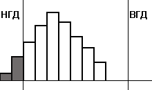Середина основания близка к среднему значению. Крутизна снижения столбцов характеризует степень разброса. Гребенка