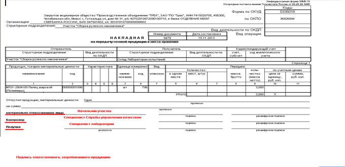 Далее экономист ПЭО распечатывает документ «Требование-накладная» по форме М-11 в количестве 3 шт. и передает их лицу, запросившему продукцию. В поле «Отпустил» подпись ставит Начальник участка, «Получил» - ответственное лицо, затребовавшее продукцию, «Разрешил» - руководитель службы-инициатора проведения испытаний.