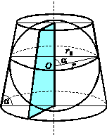 Шар, вписанный в усеченный конус. Шар называется вписанным в усечённый конус, если он касается всех образующих и обоих оснований усечённого конуса.