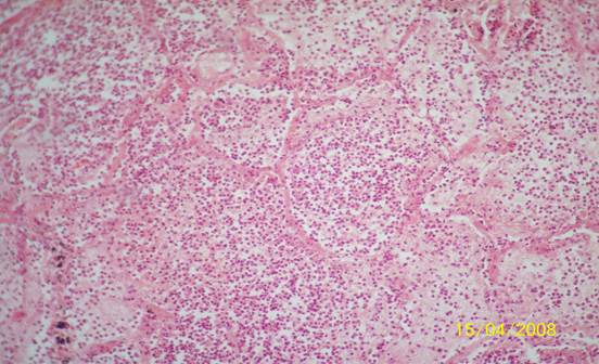 Рис. 4 Крупозная пневмония (малое увеличение)