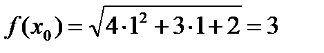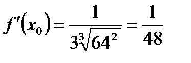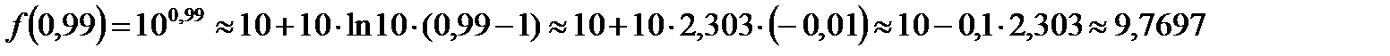 Найденное приближенное значение достаточно близко к значению 4,0615810045, вычисленному с помощью микрокалькулятора. Ответ: Пример 2. Вычислить приближенно Решение: 1) Составим функцию 2) Найдем производную и ее значение в точке х0=1, 3) Согласно формуле f(х)