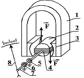 где d α / dt - угловая скорость; k = nBS - коэффициент, зависящий от конструктивных особенностей прибора; Q -заряд, прошедший через рамку. Приобретенная рамкой в момент прохождения тока кинетическая энергия расходуется на работу упругих сил