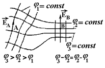 Из формул (2.11) и (2.12) вытекает выражение для разности потенциалов: