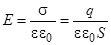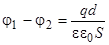 где εо - электрическая постоянная; ε - диэлектрическая проницаемость среды, заполняющей пространство между пластинами; σ = q/S - поверхностная плотность зарядов на пластинах. Разность потенциалов между обкладками (с учетом знаков)