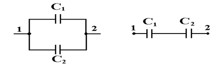 На рис. 3.1 и 3.2 показано параллельное и последовательное соединения конденсаторов, соответственно.