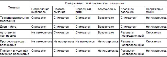 Таблица 3 ФИЗИОЛОГИЧЕСКИЕ ИЗМЕНЕНИЯ ВО ВРЕМЯ РЕЛАКСАЦИОННОГО ОТКЛИКА: ЧЕГО ДОСТИГАЮТ РАЗЛИЧНЫЕ ТЕХНИКИ
