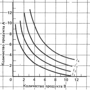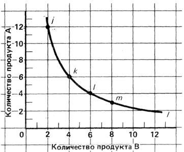 Рис.4.3 Если взять набор товаров: 12 А и 2 В, то мы получим тот же уровень полезности, что при потреблении набора товара 6А и 4В. Потребителю все равно, какой набор товаров предпочесть, т.к. полезность и от того и от другого одинаковая, поэтому кривая называется кривой безразличия.