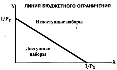 Бюджетное ограничение – показывает все комбинации товаров, которые могут быть приобретены потребителем при данном выделенном для них доходе I, см. рис.4.11. P*A+P*B ≤ I -уравнение бюджетного ограничения.