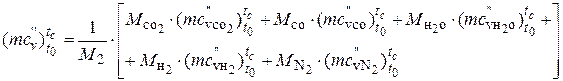 де mcv - мольна теплоємність свіжого заряду приймається рівній теплоємності повітря, mc”v - мольна теплоємність залишкових газів, в свою чергу визначається як теплоємність суміші з урахуванням частки та теплоємностей її складових. Отже, при a<1: