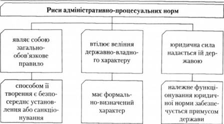 До особливостей адміністративно-процесуальних норм, то серед них можемо віднести наступні: 1. Сервісна функція адміністративно-процесуальних норм. Сенс існування норм адміністративно-процесуального права обумовлений лише одним - необхідністю чіткої регламентації порядку реалізації кореспондуючих матеріальних норм. 2. Похідний характер норм адміністративно-процесуального права напряму випливає з їх попередньої якості. Маючи на меті забезпечення реалізації норм "матеріальних" галузей права, вони об'єктивно не можуть існувати без останніх. Поява матеріальних норм права завжди передує появі норм процесуальних. 3. Полігалузевий характер організуючого впливу адміністративно-процесуальних норм. На відміну від норм кримінально-процесуального та цивільного процесуального права, які "обслуговують" лише однойменні матеріальні галузі (кримінальне і цивільне право), адміністративно-процесуальні норми встановлюють порядок реалізації норм цілої низки матеріальних галузей - Адміністративного права, Митного права, Земельного права, Трудового права та інших. 4. Наявність особливого предмета регулювання. Норми адміністративно-процесуального права регламентують чітко визначену сферу соціальних відношень - публічно-управлінських, організуючих суспільних відносин з приводу реалізації встановленого адміністративно-процесуальним законодавством порядку вирішення адміністративних справ 5. Розгалужена система джерел адміністративно-процесуального права. Якщо норми інших процесуальних галузей встановлюються або санкціонуються лише вищими органами держави, то адміністративно-процесуальні норми приймаються практично усією вертикаллю органів публічної влади. 6. Спрямованість на реалізацію "позитивних" матеріальних правовідносин. Як відомо, норми кримінально-процесуального та цивільного процесуального права завжди спрямовані на урегулювання суперечки про право і тісно пов'язані із застосуванням заходів державного примусу. На відміну від них, аналогічну мету має лише незначна частка загального масиву адміністративно-процесуальних норм. Переважна більшість норм адміністративно-процесуального права покликані забезпечувати реалізацію "неконфліктних" (позитивних) правовідносин, що складаються у ході виконавчо-розпорядчої діяльності органів публічної влади. 7. Широта кола суб'єктів застосування адміністративно-процесуальних норм. Коло суб'єктів застосування норм кримінально-процесуального та цивільного процесуального права є порівняно вузьким. Відповідними повноваженнями наділені лише суди, органи попереднього слідства, дізнання, прокуратури та деякі інші органи (їх посадові особи), чітко визначені в законі. Натомість, адміністративно-процесуальні норми застосовуються практично усім виконавчо-розпорядчим апаратом публічної влади - від керівників підрозділів державних підприємств до Президента України. Дана особливість пояснюється багатоаспектністю діяльності публічної адміністрації та надзвичайним багатством її процесуальних форм. Узагальнюючи викладені положення, можемо сформулювати визначення поняття адміністративно-процесуальної норми: Адміністративно-процесуальна норма - це встановлене або санкціоноване державою та забезпечене її примусом загальнообов'язкове правило поведінки, яким регулюютьс